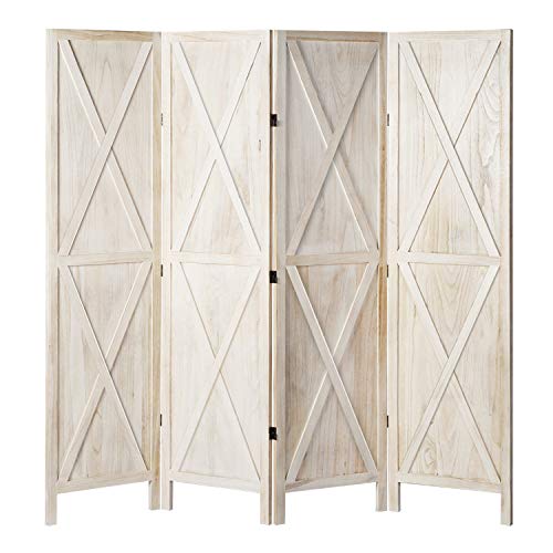 10+ 4 Panel Wood Room Divider. Solid pine wood and bamboo. Tall extra wide extra wide privacy screen.